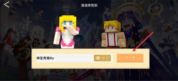 1、在性别选择界面,选好角色性别后,可点击【随机】换名再点【下一步】,进入外观挑选环节。
