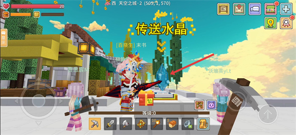 4、找到【传送水晶】,点击它可传送离开天空之城,前往其他世界冒险。