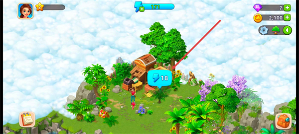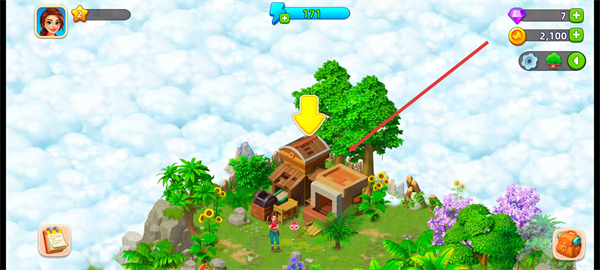 1、进入游戏主界面,跟随指引点击目标建筑区域。