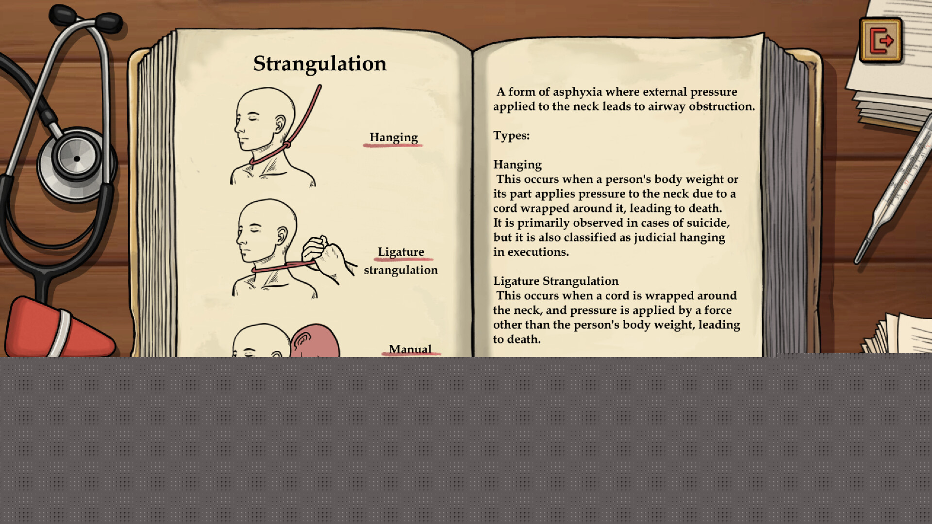 基于收集到的证据,玩家必须在规定时间内完成死亡证明、医疗记录、尸检报告等专业法医学文书,准确描述死者身份、死亡时间、致死原因及案件性质(自杀/他杀/意外)。错误的信息可能导致推理偏差,因此需反复核对数据,同时整理线索卡片,建立人物关系图和时间线,为后续推理奠定基础。