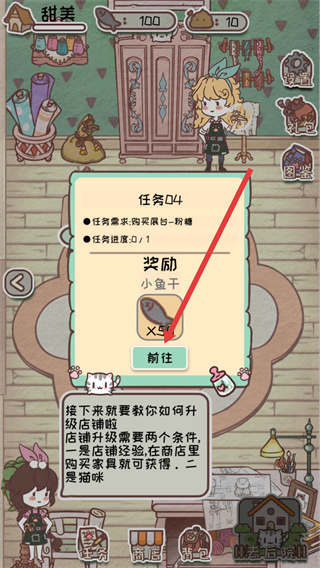 2、赚取小鱼干升级店铺解锁更多玩法功能,随着店铺等级提升也能更加轻松的融入其中,不会轻易出现枯燥无聊。