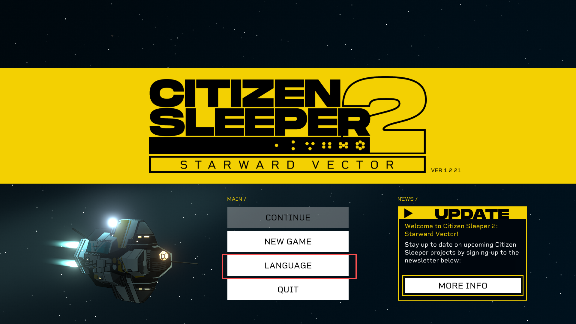 1、进入游戏,点击屏幕下方的“LANGUAGE”。
