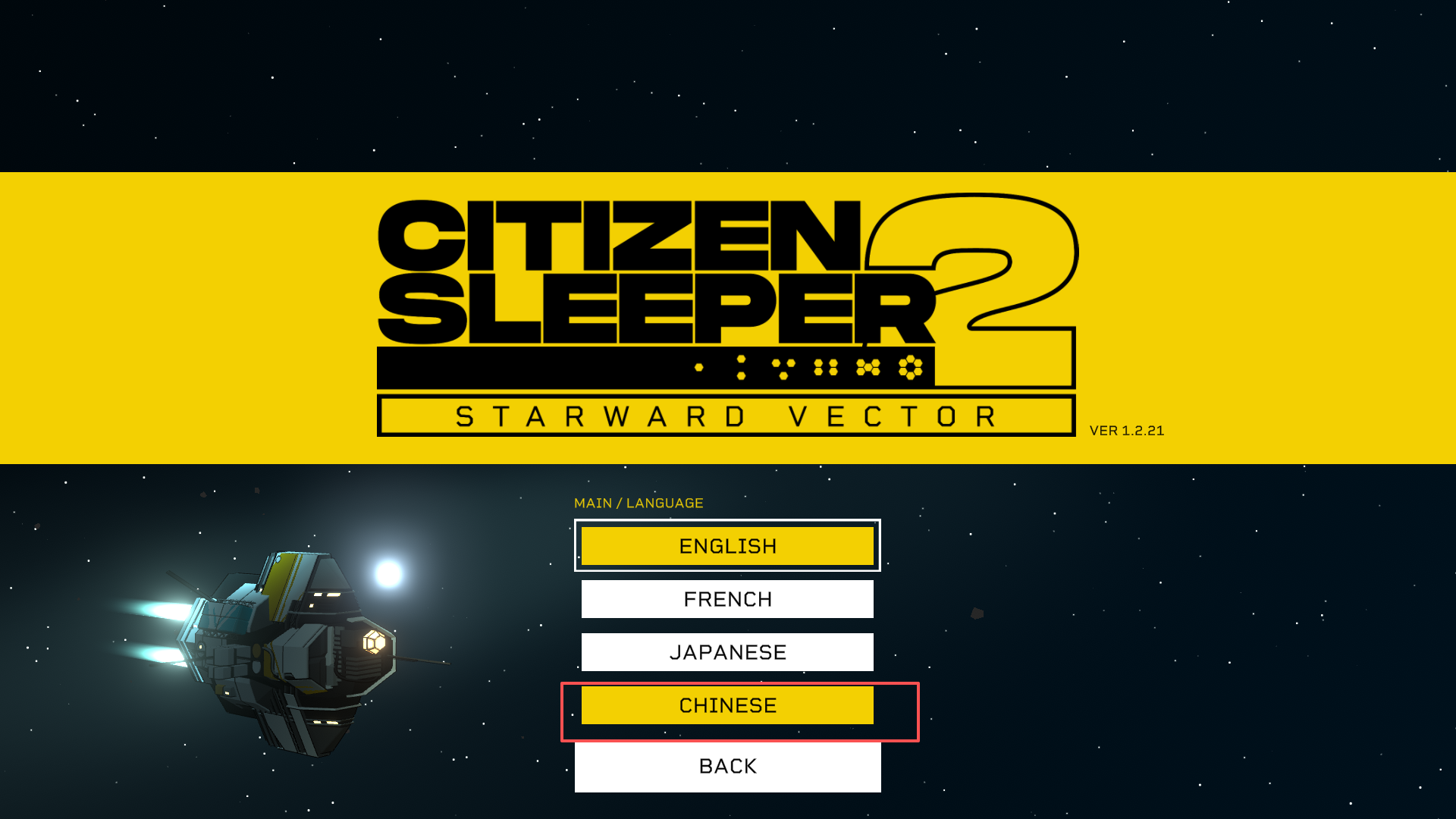 2、选择下方的“CHINESE”,随后返回主界面。