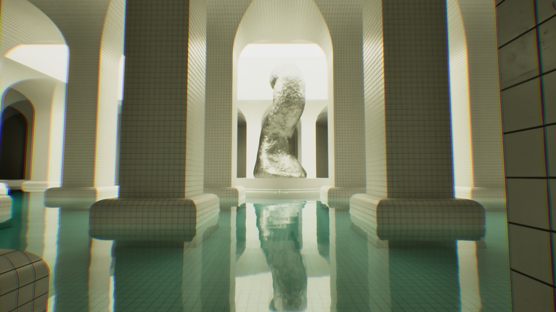 2、潜入Dreampools的诡异静谧中,这里是一个无尽的迷宫,充满了超现实的积水走廊和闪烁的倒影。没有固定的路径,您可以自由探索深处,解开那些受互联网标志性泳池房间启发的谜题。