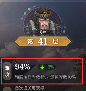 难度会每日下降1%,最多下降10%,仅针对当前最高的未通关层生效,且不继承至下一层。