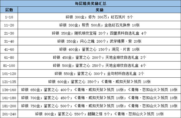 精英试炼的对象均为小怪群,通关限时1分钟。每个精英怪的属性会逐层提高但数量不会提升,为8个近战刀手,4个远程弓手均带霸体,免疫控制。入场后8个近战刀手会先出现,稍晚一些才会出现弓手。弓手点位固定,不会移动,少侠在限时时间内击败全部精英即可通关。