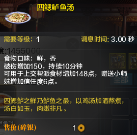恢复类菜品就少侠根据自身血量来决定就可以,一共有如下可选: