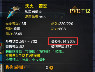 前面已经提到了,会伤属性在天波府中只能吃保底,所以PVE饰品装备需要换成加会心的。