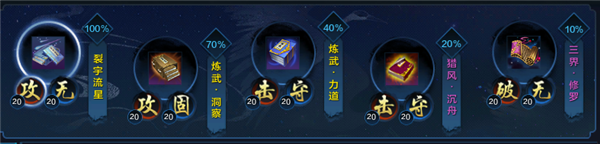 心法的选择上一般侧重于双攻和会心命中,三界·修罗由于技能加成收益高,属于必带心法。沉舟在低血量时可以获得高收益,也属于必带心法,不过带沉舟就需要维持自身的低血状态。
