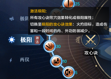 窍穴一定要选择激活极阳,极阳可以减少目标的内外功防御,能有效的提升少侠和伙伴的输出。