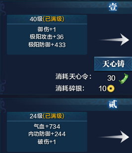 防具的天心铸第一条一定要洗极阳攻击,第二条优选气血防御。
