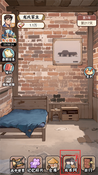 3、进入龙氏家主相关场景后,点击【关系网】按钮,查看角色关联脉络,梳理任务与剧情线索。