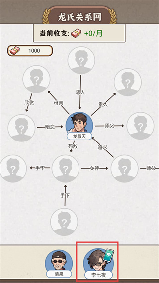 4、在【关系网】界面中,选择【李七夜】角色进行互动,解锁对应剧情内容,推进龙氏家主线进度。