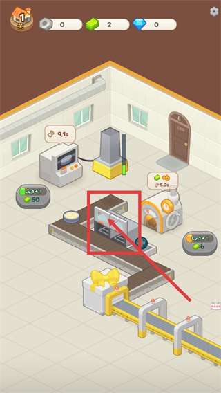 3、关注传送带旁的食材处理设备,点击操作完成食材加工,为后续蛋糕制作提供原料支持。