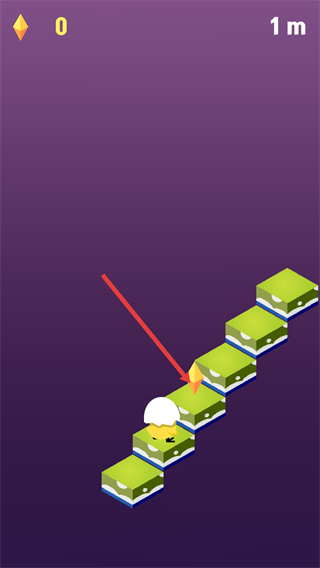 2、在游戏过程中,控制角色移动以收集场景中的菱形道具,同时累计前进的距离(如界面显示的【1m】)。