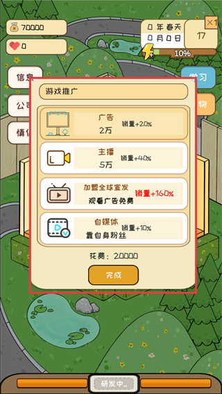 4、游戏研发后选择【加盟全球宣发】,合理投入成本提升销量,助力游戏获更高收益。
