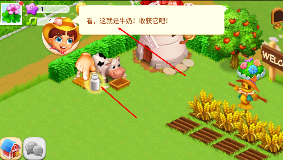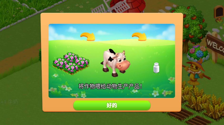 3、收割来的三叶草可以拿来喂奶牛,奶牛可以生产牛奶,使用蓝色三闪电可以迅速完成喂养