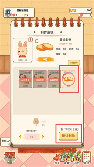 3、在制作蛋糕界面选定黄油曲奇,点击确认制作开启15秒流程。