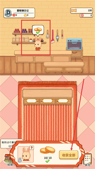 4、黄油曲奇制作完成后,点击收获全部可领取10个成品并更新任务。