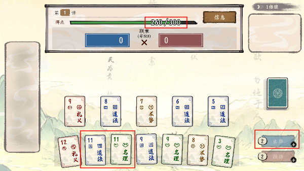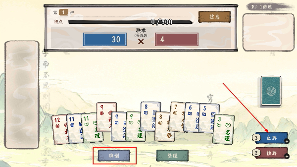 4、完成牌型操作后,查看得点情况,继续通过牌型操作推进数值进度。