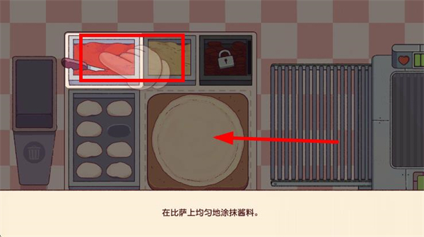 2、选择酱料,在饼底上均匀涂抹酱料,再添加芝士等配料。