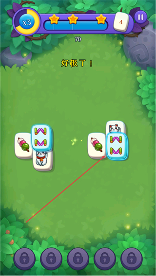 4、消除所有可配对的牌后,达成关卡目标,获得三星评价,推进游戏进程。