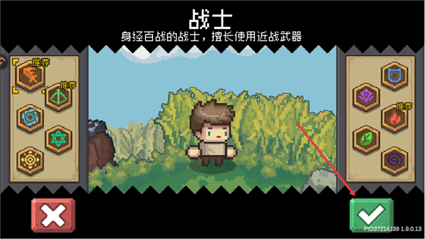 1、选择战士职业,点击右下角绿色对勾按钮完成确认,即可进入游戏。