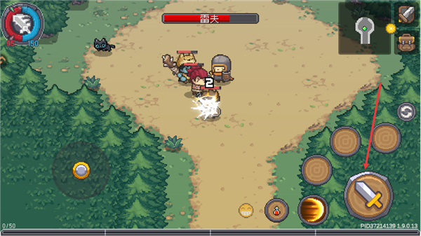 3、在战斗场景中,点击右下角剑形攻击按钮发动攻击,击败敌人推进关卡,同时留意左上角角色的血条状态。