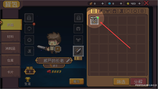 4、打开背包界面后,选择右侧的物品,将其装配到角色的对应栏位,以此提升角色的属性与战斗能力。