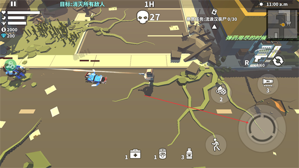 2、操控角色移动到丧尸区域,使用右侧枪械瞄准敌人开火,削减丧尸数量。