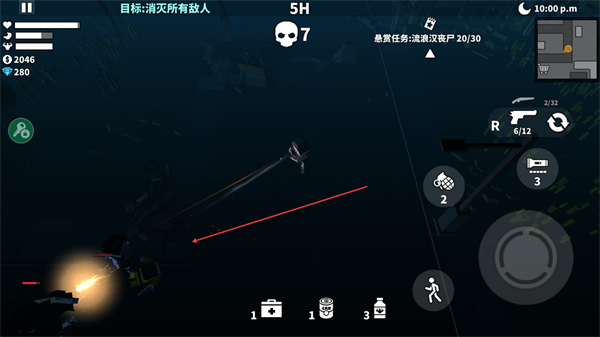1、操控角色移动并瞄准剩余丧尸,用枪械持续攻击,推进消灭所有敌人目标,同时留意悬赏任务进度。