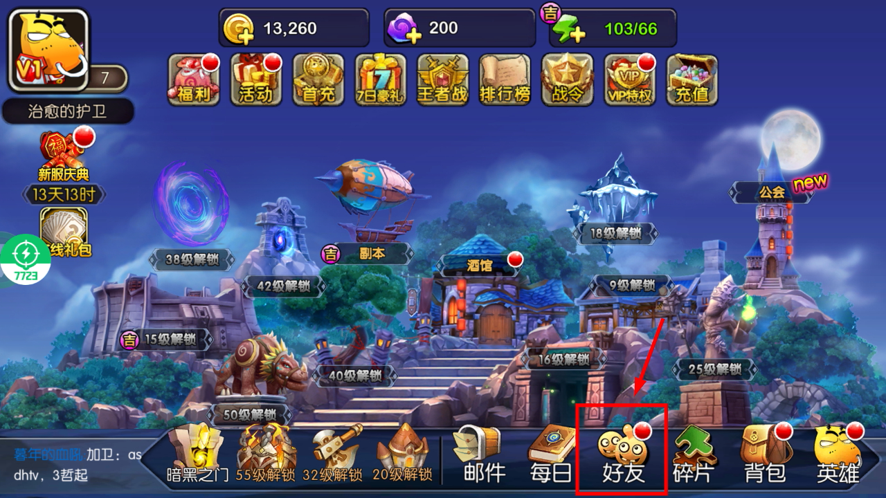 1、在主界面底部找到并点击【好友】按钮,即可进入好友相关功能界面开启后续社交操作。