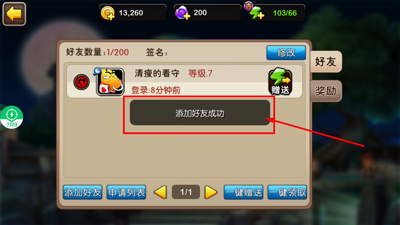 4、成功添加好友后在列表找到该好友,点击其右侧【赠送】按钮可向好友赠送道具。
