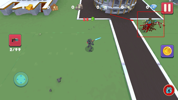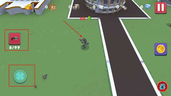2、战斗场景中可使用左侧【8/99】标识的武器,配合移动按钮,精准瞄准靠近的僵尸完成射击抵御。