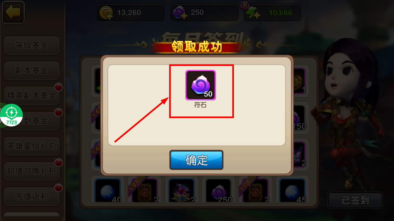 3、点击确认领取【符石50】,奖励实时到账,可用于后续召唤或购买限时道具。