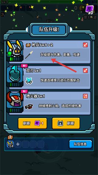 4、队伍升级后,可提升【枪兵】等级,升级后会增强其伤害、距离、攻速属性,助力后续关卡战斗。