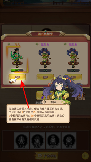 4、当拥有6个相同武将时,点击选择的按钮来合成高阶武将,高阶武将属性更强,这是阵容关键技巧。