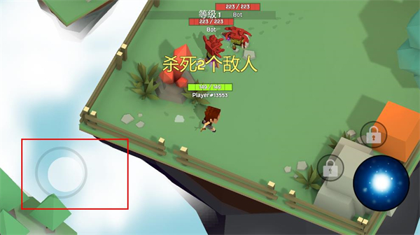 1、通过左侧摇杆控制移动,寻找战场中的敌人。