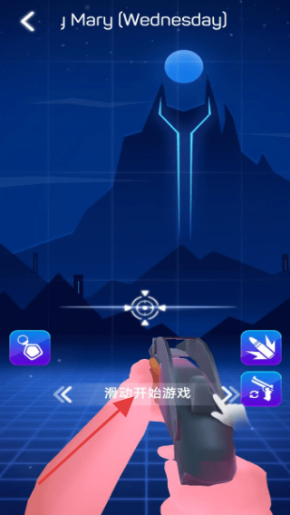 1、进入首关选择流行音乐曲目,虚拟光枪随前奏亮起,首个黄色音符从右侧飘来,点击屏幕完成首次节拍射击开启挑战。