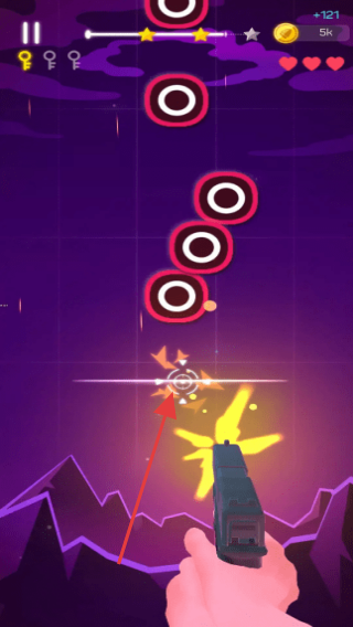 2、障碍规避策略玩法:面对旋转激光墙需滑动枪械绕后射击,遭遇分裂音符时优先清除母体目标,考验临场战术调整能力。
