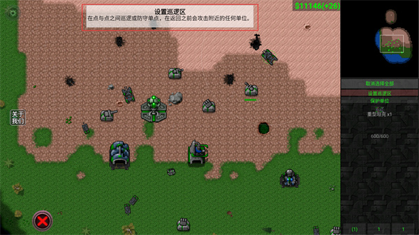 4、通过设置巡逻区功能,在两点间划定防守区域,区域内单位会自动攻击进入的丧尸,强化防御效率。