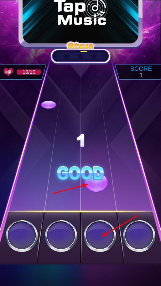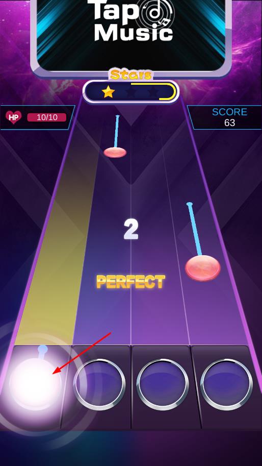 1、进入游戏后,从海量曲库中挑选一首喜欢的歌曲,等待前奏结束,根据屏幕上出现的节奏提示,在对应位置进行敲击,开启音乐节奏之旅。