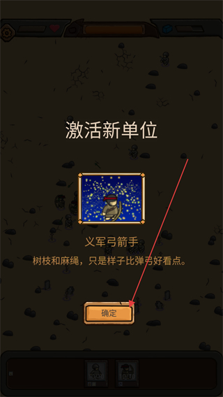 3、在激活新单位界面,点击确定解锁义军弓箭手,新增远程单位增强部队输出类型。
