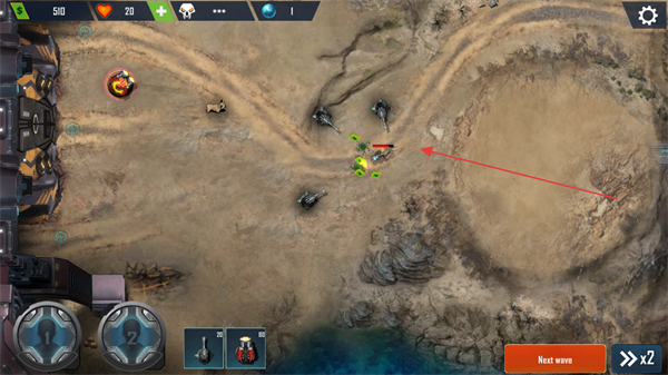 1、点击下方防御塔选项,将其部署到路径旁的空位,利用地形拦截敌方单位,准备迎击进攻。