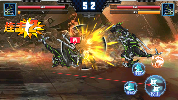 1、组装完恐龙机甲后,点击出战按钮进入格斗对局。