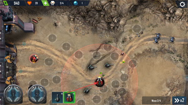 4、部队兵种类型丰富,每个兵种都有独特的作战优势,结合金币优势快速扩充兵力,在关键位置部署部队支援防御阵线。