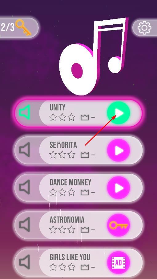 2、关卡解锁关联:每首歌曲对应专属关卡,完成低难度可解锁高难度版本,同一歌曲有多样挑战,增加可玩性。