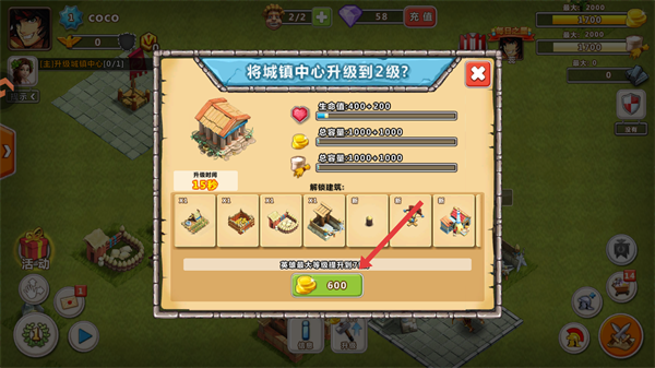 5.首先升级金库和粮库,这个很重要,然后升级主城。
