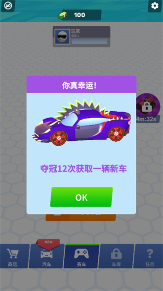 2、出现一个任务,夺冠12次就能获取到一辆全新的车辆,点击ok。