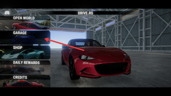 2、在游戏菜单中点击左侧的【GARAGE】进入车库。